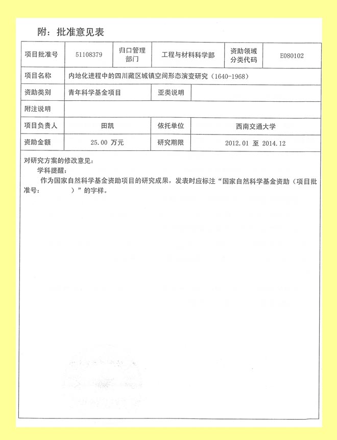 在2011年申报的国家自然科学基金项目中,建筑学院张蓉、田凯、黄瑞三位老师各获批准青年基金项目一项。目前,我院在研的国家自然科学基金项目已达8项,其中面上项目3项,青年基金项目5项,在全国建筑学科居前列位置。