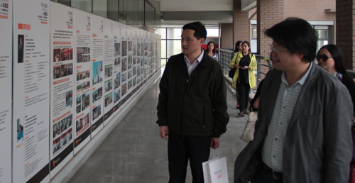 沈院长等陪同陈教授参观学院展厅