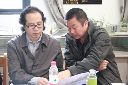 沈中伟院长、栗民副书记向徐校长介绍学生作品