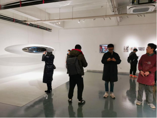 策展人崔付利在致辞中感谢建筑学院对展览的全力支持,并介绍了本次展览的策展构想。在互联网和高科技发展,“万物互联”的背景下,人和人的交往方式发生了很大的变化。19位(组)艺术家以不同的方式回应着展览主题“超越界面”,他们有的强调个体与他者的关系建构;有的则是自我为敌,克服某种惰性经验;有的则是注重与现实与现场的在地关联。在新的现实中去构建个体与自我、他者和社会的新的交往方式。