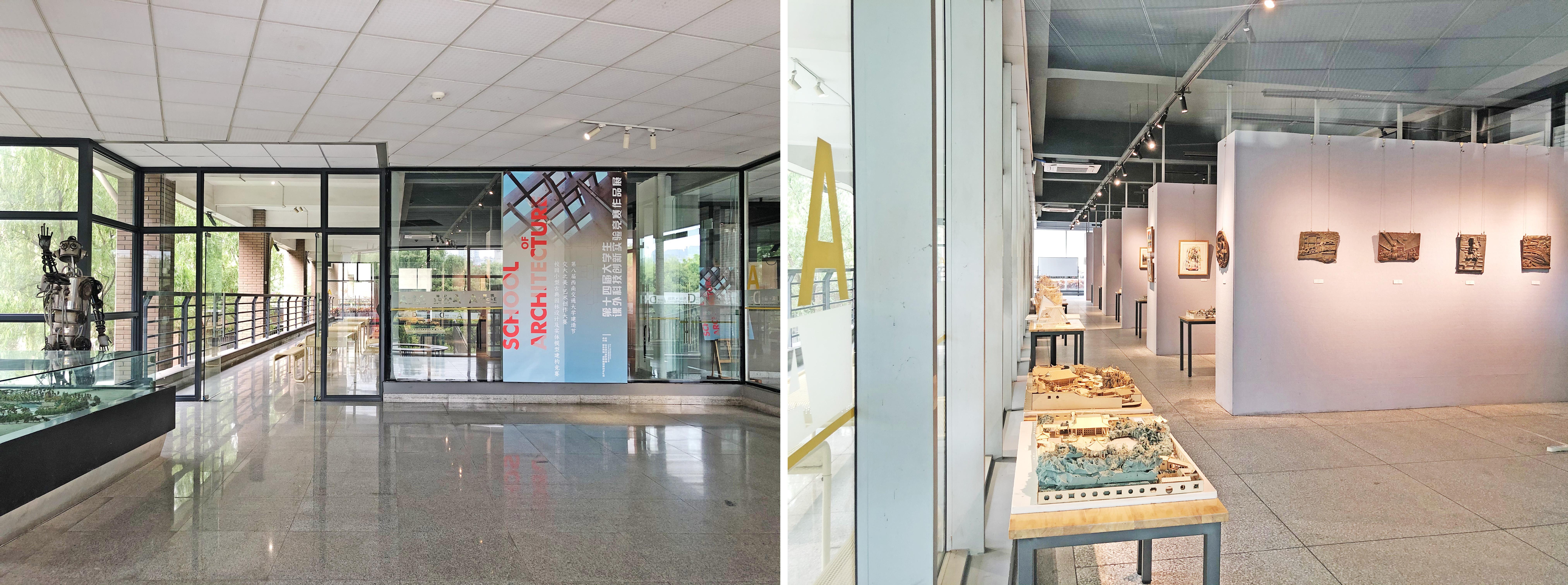 展览作品包含了“公园城市”景观建构、中式园林设计模型、校庆题材浮雕、校园生活版画、校园风景油画、校园风景乱针绣等内容。丰富多样的作品表达了建筑学院师生热爱成都、热爱交大、热爱校园的感情,也展现了学院在实验教学和课外科创实验活动中培养学生动手能力、创新精神、学习方法、研究能力的成果。