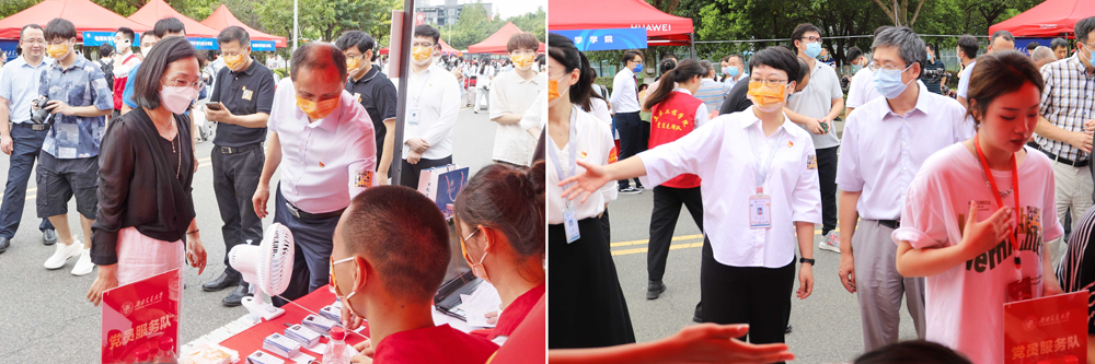 学校及学院领导高度重视迎新工作。上午10时,学校党委副书记杨爱华、副校长康国政及相关职能部处领导来到学院迎新点,与学院领导班子成员、新生辅导员、志愿者和2022级新生亲切交流,了解迎新工作进展,并强调做好迎新及疫情防控防护等各项工作,表达对新生们的热烈欢迎。