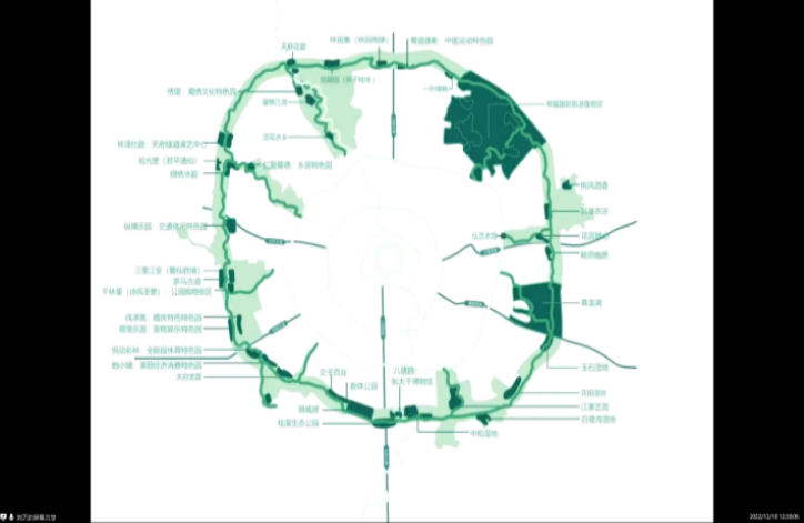 张静总建筑师的报告分为风景园林设计师生态逻辑思考、“公园城市”示范区探索与实践、风景园林设计师的使命担当三个部分。其从生物多样性入手,通过探讨城市多样发展的层次,并以(山)龙泉山森林公园、龙门生物多样性博览园、(水)城市河流——驿马河和条条河的生态修复工程、(林)什邡市国家储备林建设项目、(田)天府绿道,(湖)兴隆湖水生态综合提升等工程为例,探讨景观设计师如何切入生态修复和生物多样性的表达。