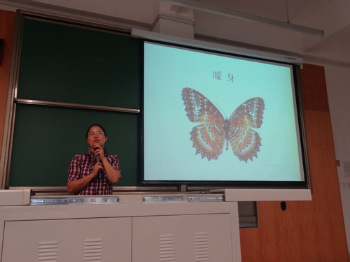 汪老师在正式开讲之前首先问了在场学生一个问题,是否和邻位的同学互相认识,在老师的引导下,相邻的座位的学生互相握手。